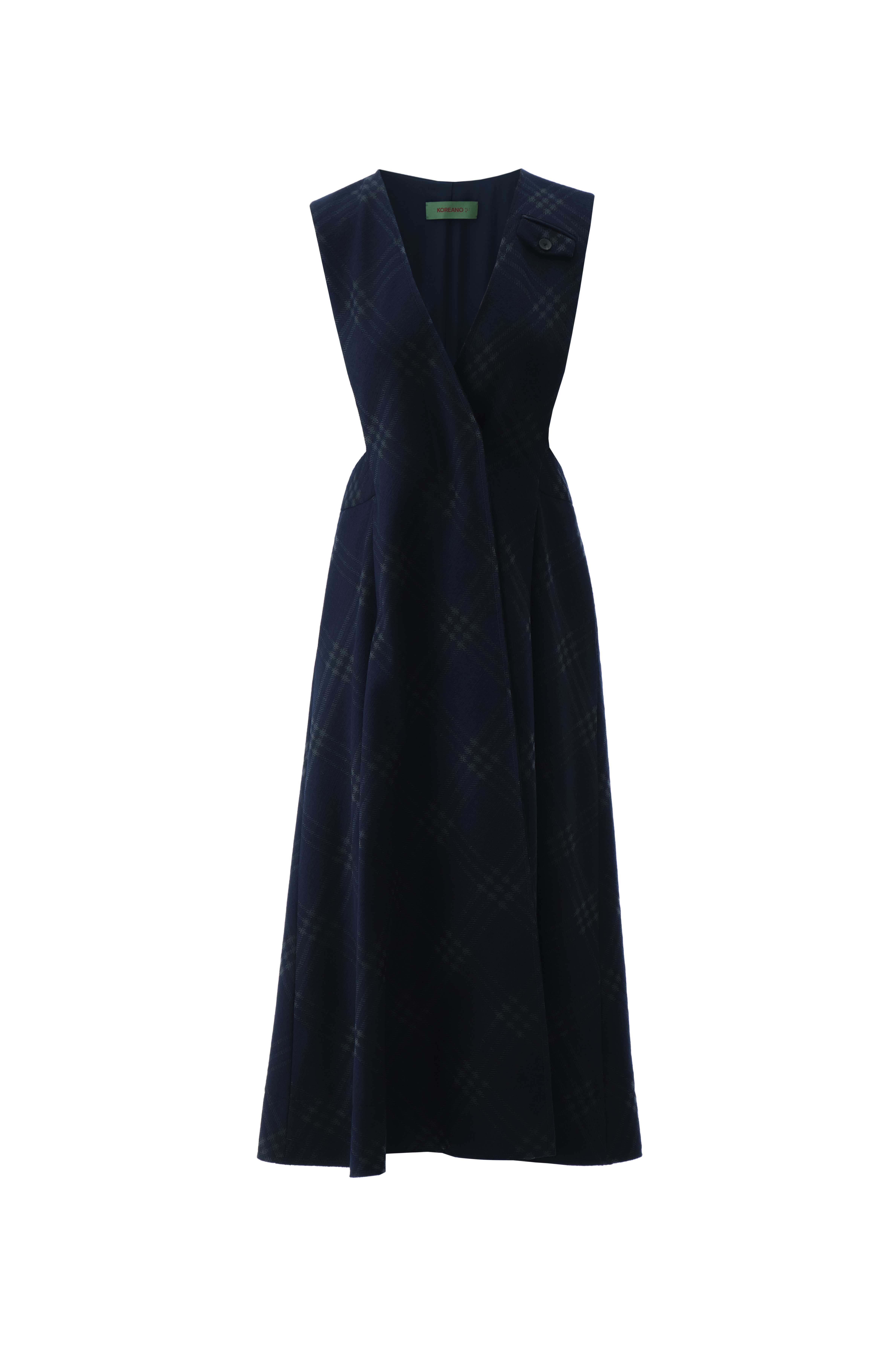 深邃蓝灰色格纹女连衣裙