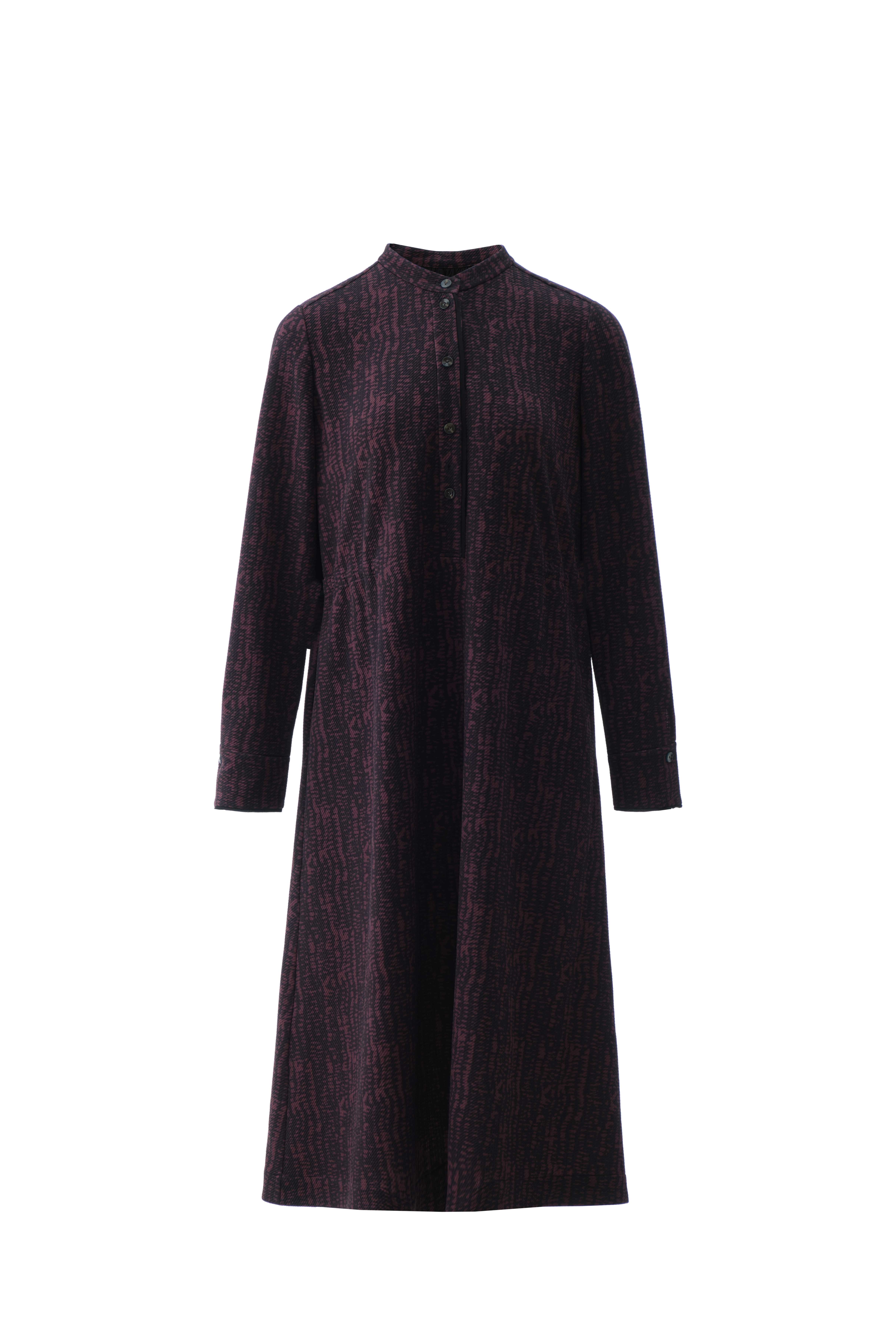 紫黑波印花女连衣裙
